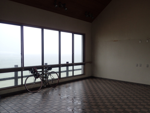 小雨の中、海に目を向けると