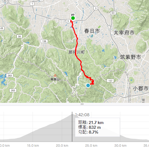 約50km 最高標高は832mでした。