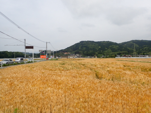 さて走り始めると、黄金色の麦畑!