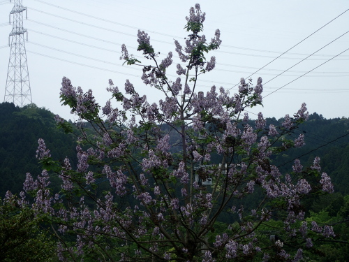 そして坂を下っていると大きな木に紫色の花が満開に
