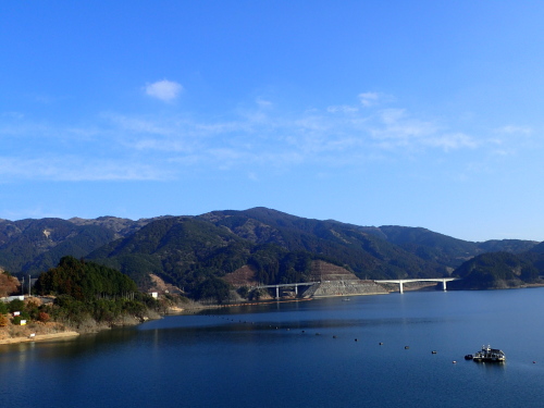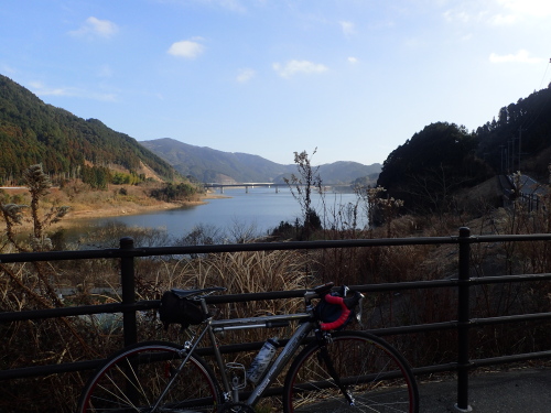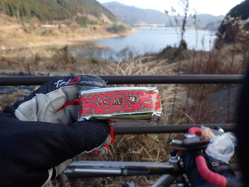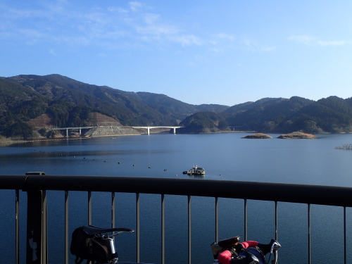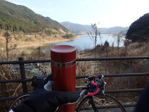 五ケ山湖を見ながら休憩