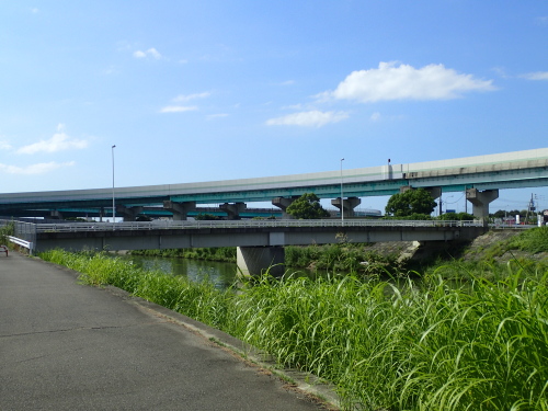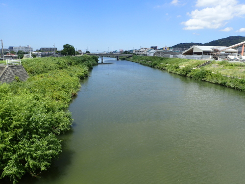御笠川の堤防上を